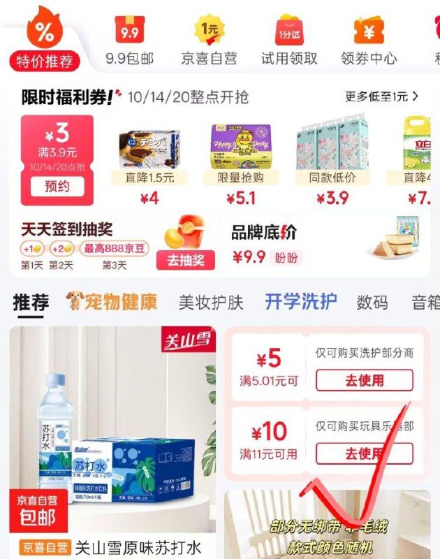 🚦 app首页-特价进去领-5洗护卷