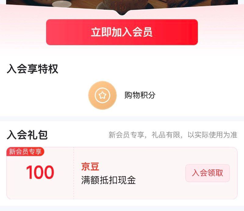 京东入会100京豆